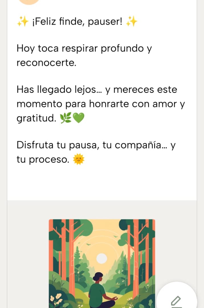 "P.a.u.s.a. nació de ese recorrido. Hoy quiero que experimentes por ti como cuando cultivamos presencia, todo mejora: nuestras relaciones, nuestras decisiones y nuestros proyectos."